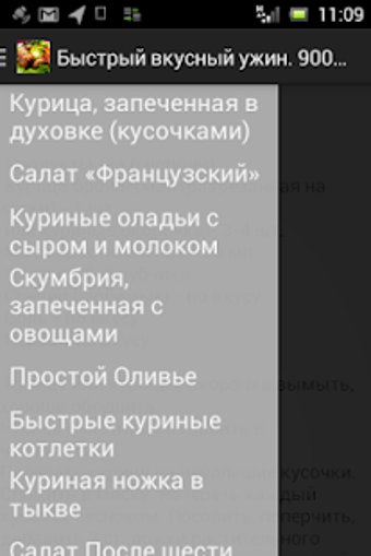 Быстрый вкусный ужин은 Android 9.0 이상에서 작동합니다. 앱의 현재 버전은 4.1이며 러시아어로만 실행할 수 있습니다.